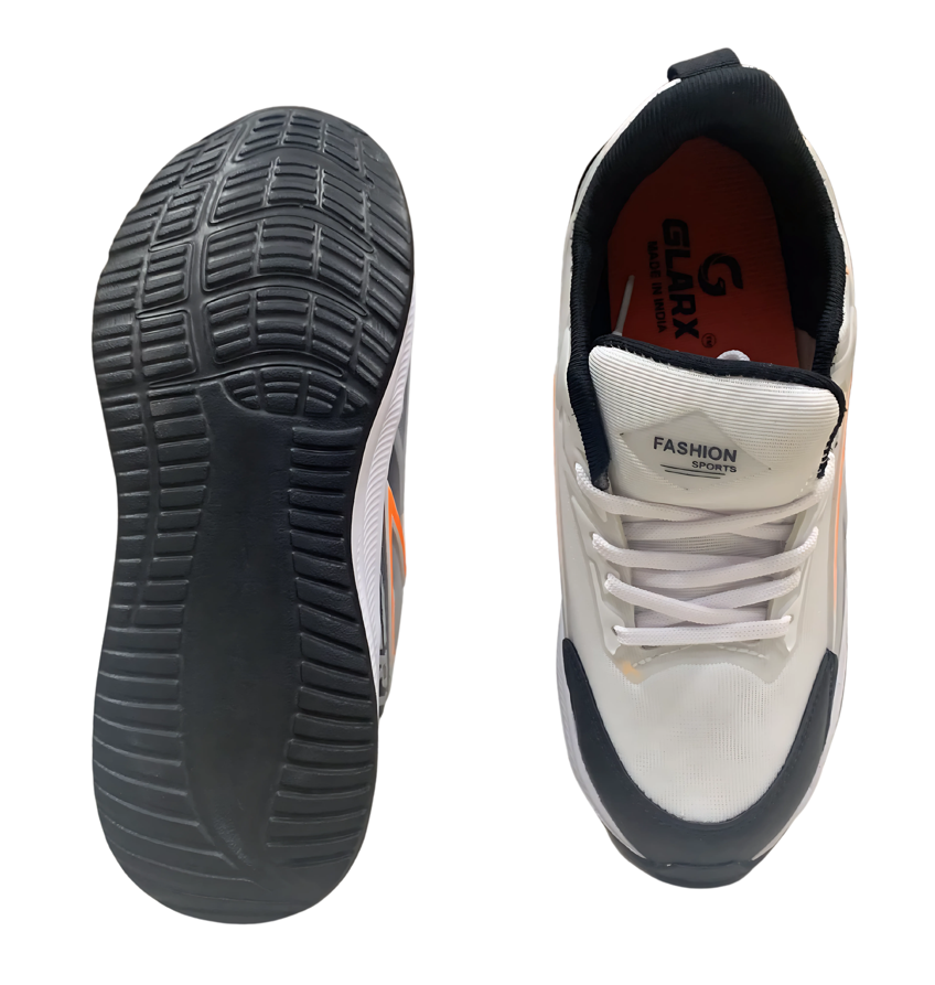 Upgrade your footwear collection with these stylish Men’s White & Black Sports Running Shoes. Designed with a sleek white base, bold black overlays, and a touch of orange detailing, these shoes combine modern style with everyday comfort. The lightweight build and cushioned sole provide excellent support, making them perfect for running, workouts, or casual wear.